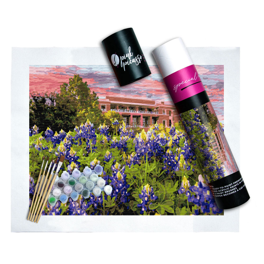 Transform your creative vision into reality with this comprehensive paint-by-numbers kit celebrating President George W. Bush's artistic legacy. This thoughtfully curated collection features a stunning springtime scene of the George W. Bush Presidential Center as seen from the natural beauty of Laura W. Bush Native Texas Park.